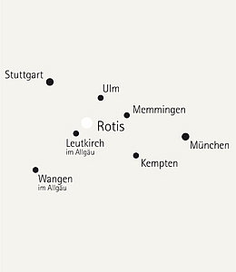 A7 richtung ulm bis autobahnabfahrt dietmannsried. nach altusried und kimratshofen. in kimratshofen rechts abbiegen richtung legau. in legau ca. 70 m nach kirche links (wegweiser rotis) ab hier wie oben (aus richtung münchen oder ulm).