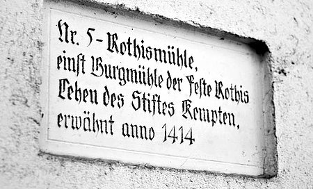 ein alter burgberg, der über dem weiler thront, ist – soweit man heute weiß – der ursprung von rotis. im jahr 1414 wurde unter ausnutzung der wasserkraft der ach eine mühle eingerichtet, mit zugehörigem bauernhof. mehr als 550 jahre später kauften die aichers diese mühle, zogen nach rotis, fügten noch ein paar gebäude dazu und lebten und arbeiteten fortan auf diesem idyllischen fleckchen allgäu.