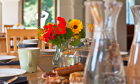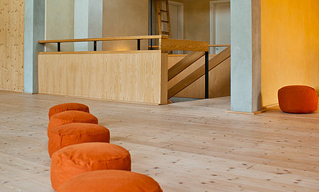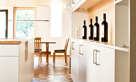 massives holz. lehmwände in den innenräumen. sanfte farben. gesundes raumklima. einzel-, 2- und 3-bettzimmer, 3 bäder, teils mit dusche, teils mit badewanne. die küche komplett ausgestattet, schön und praktisch. ein großer wohnraum, zum teil mit kreuzgewölbe. ein kachelofen mit fenster. unter dem dach ein heller seminarraum mit blick in die allgäuer landschaft, über garten, wiesen und obstbäume.